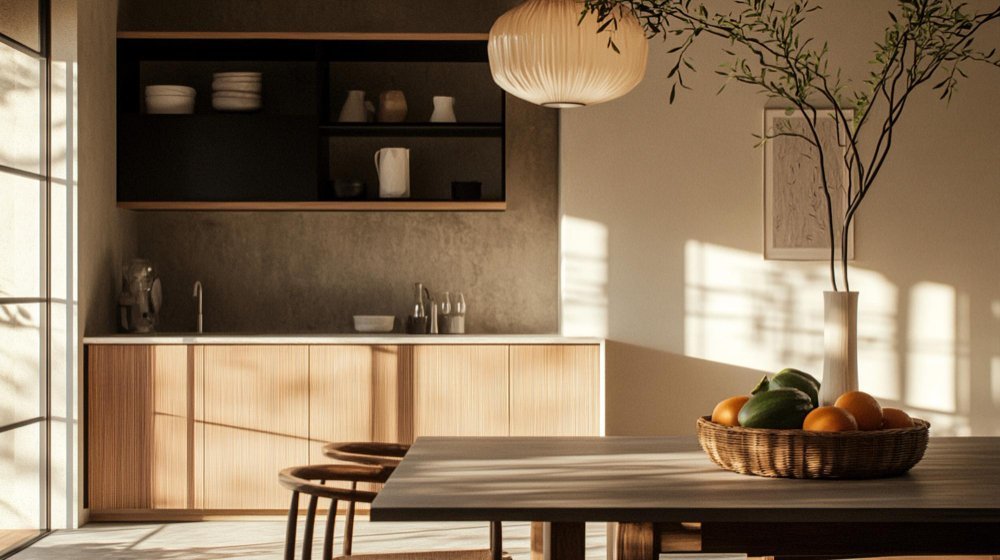 Le style Japandi fusionne l’élégance japonaise et la douceur scandinave. Cette cuisine se distingue par sa simplicité, ses matériaux naturels et une atmosphère apaisante.