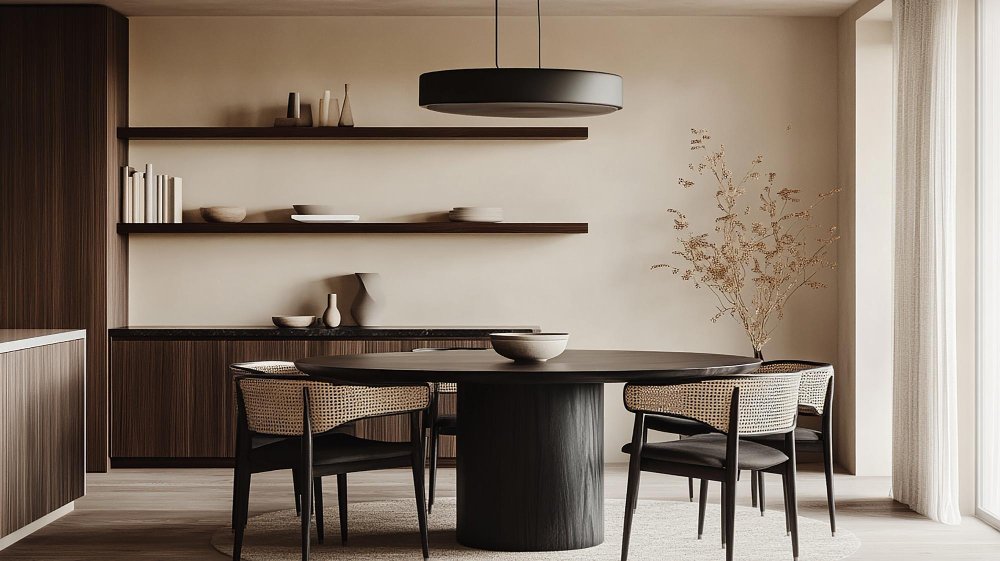 Le contraste entre surfaces lisses et matières brutes crée une profondeur subtile.