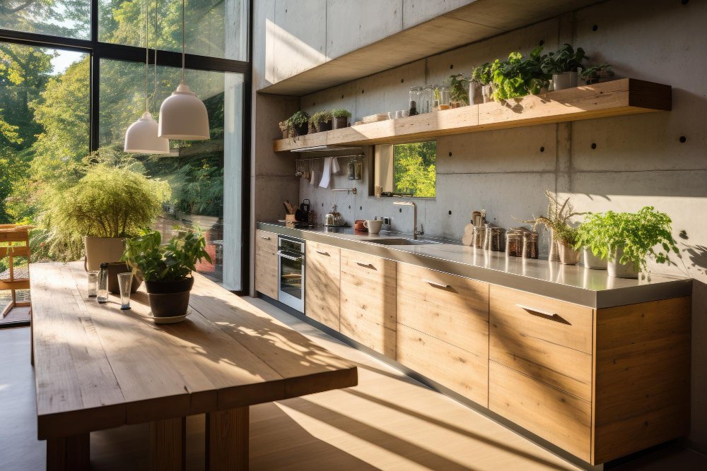 La cuisine naturelle célèbre la beauté des matériaux bruts et l’harmonie avec la nature. Lumineuse, apaisante et fonctionnelle, elle crée une atmosphère saine et intemporelle.