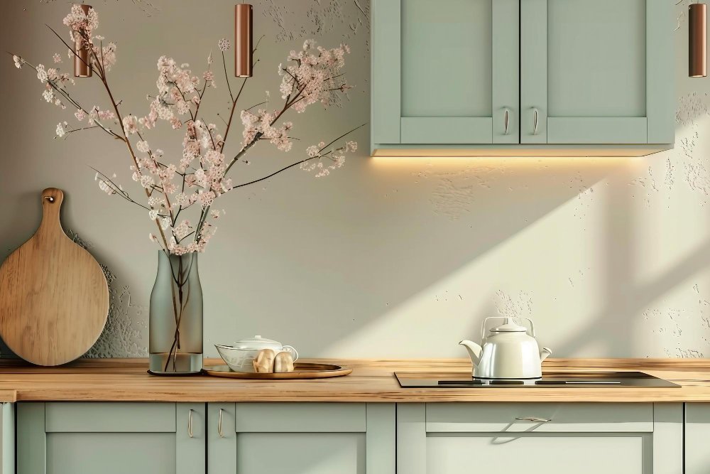 La cuisine pastel incarne la légèreté et la sérénité. Ses teintes douces, du bleu ciel au vert sauge, créent une atmosphère paisible et accueillante.