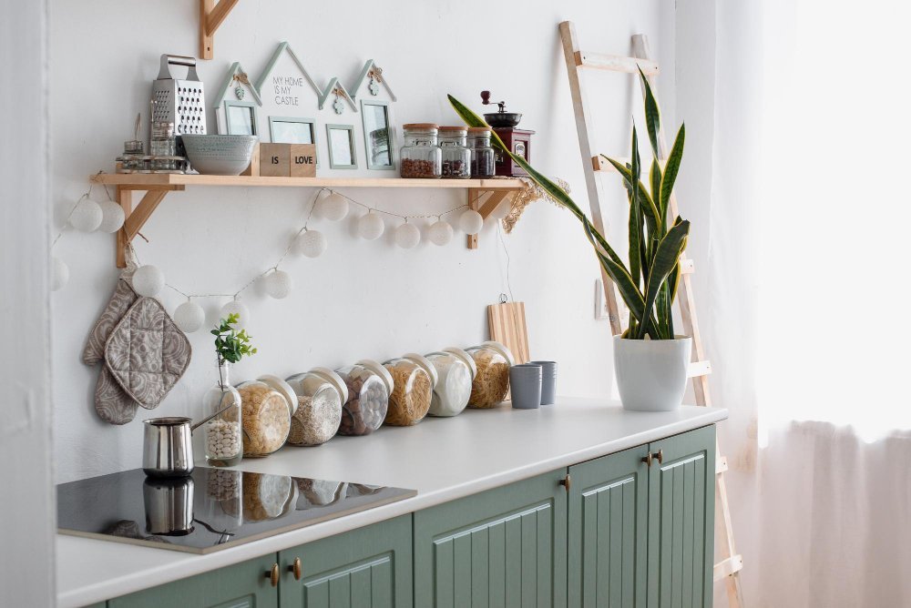 Le chêne, le frêne ou le pin sur les sols, façades et étagères apportent une chaleur naturelle.